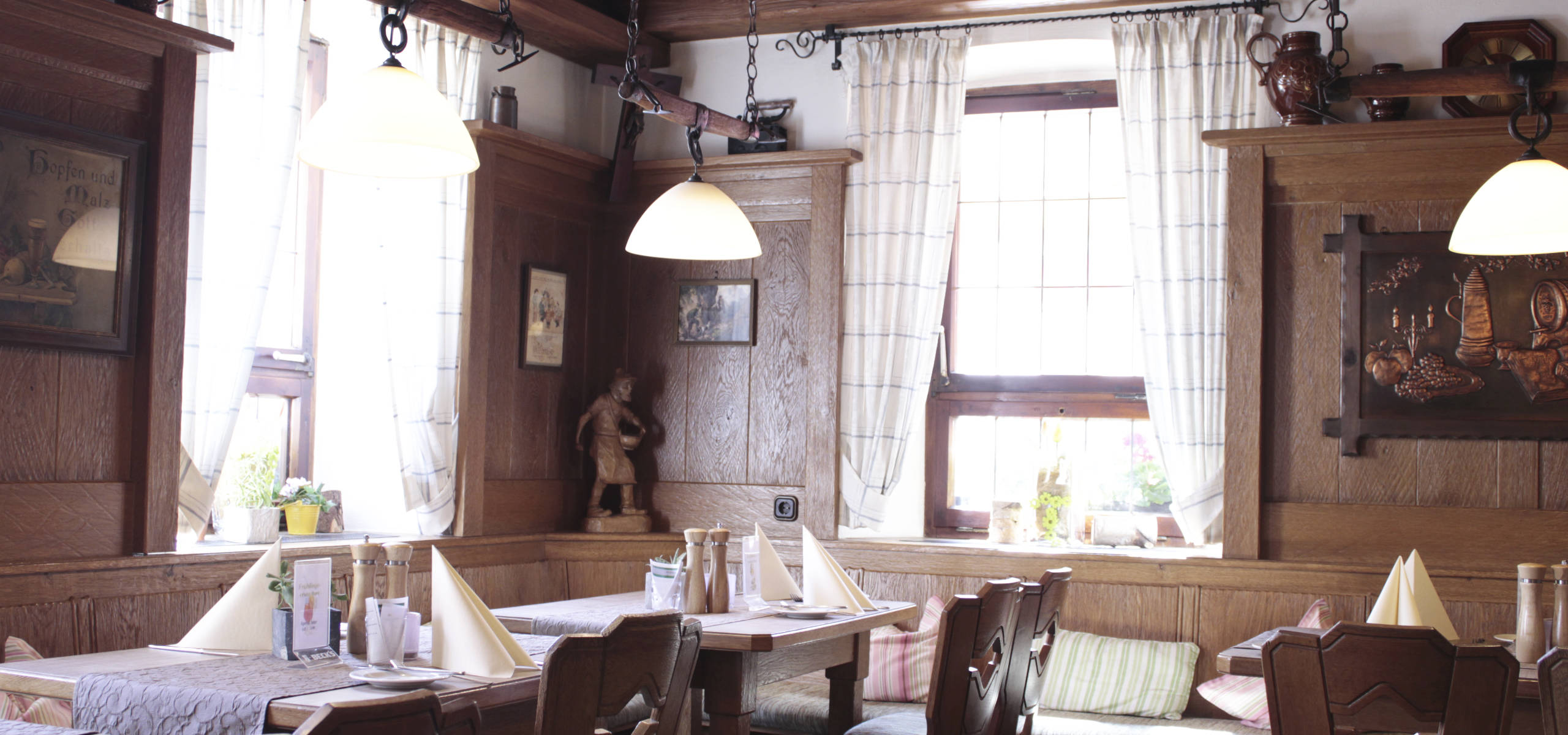Genießen Sie regionale Gerichte in unserem Restaurant, egal ob als Hotelgast, als Reisegruppe oder bei einer Familienfeier.